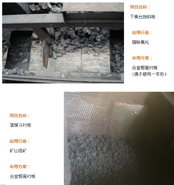各種礦料破碎、篩分及輸送等系統(tǒng)所涉及到的各種防磨部位(如轉(zhuǎn)接塔、轉(zhuǎn)接斗、落料斗、溜管、溜槽、排渣溝等)
